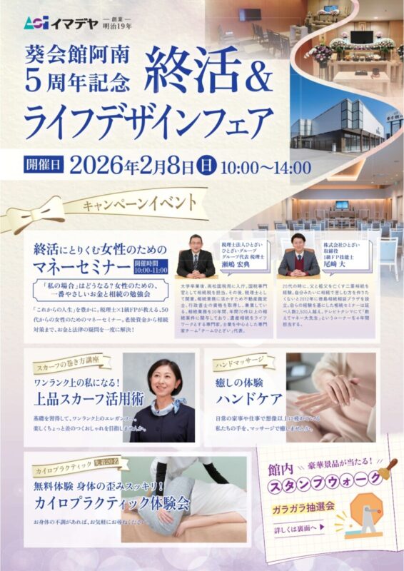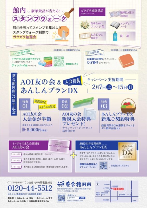 イマデヤ 葵会館阿南はおかげさまで5周年を迎えました! 地域の皆様への感謝を込めて、これからの人生をより豊かに、より安心に彩るための特別なイベントを開催いたします。
