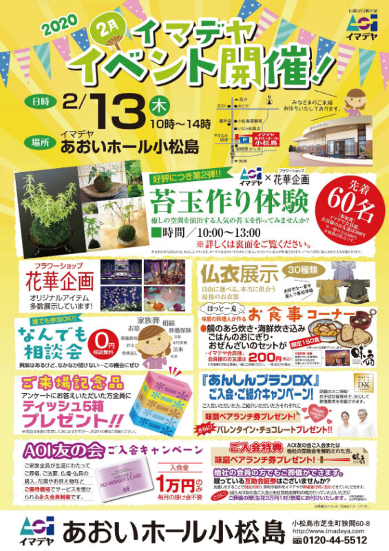 2月13日(木)10時~14時 イマデヤあおいホール小松島にてイベントを開催させていただきます。