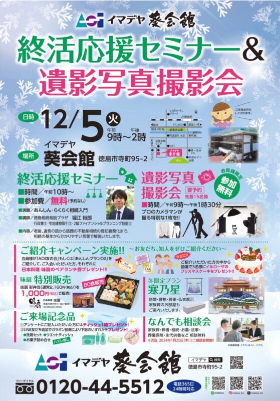 イマデヤ葵会館、令和5年最後の終活応援イベント開催です!