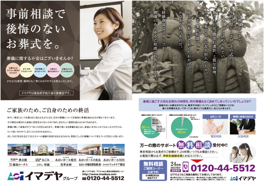 徳島県学校生協とイマデヤはご葬儀に関するパートナーサービスを提携しております。