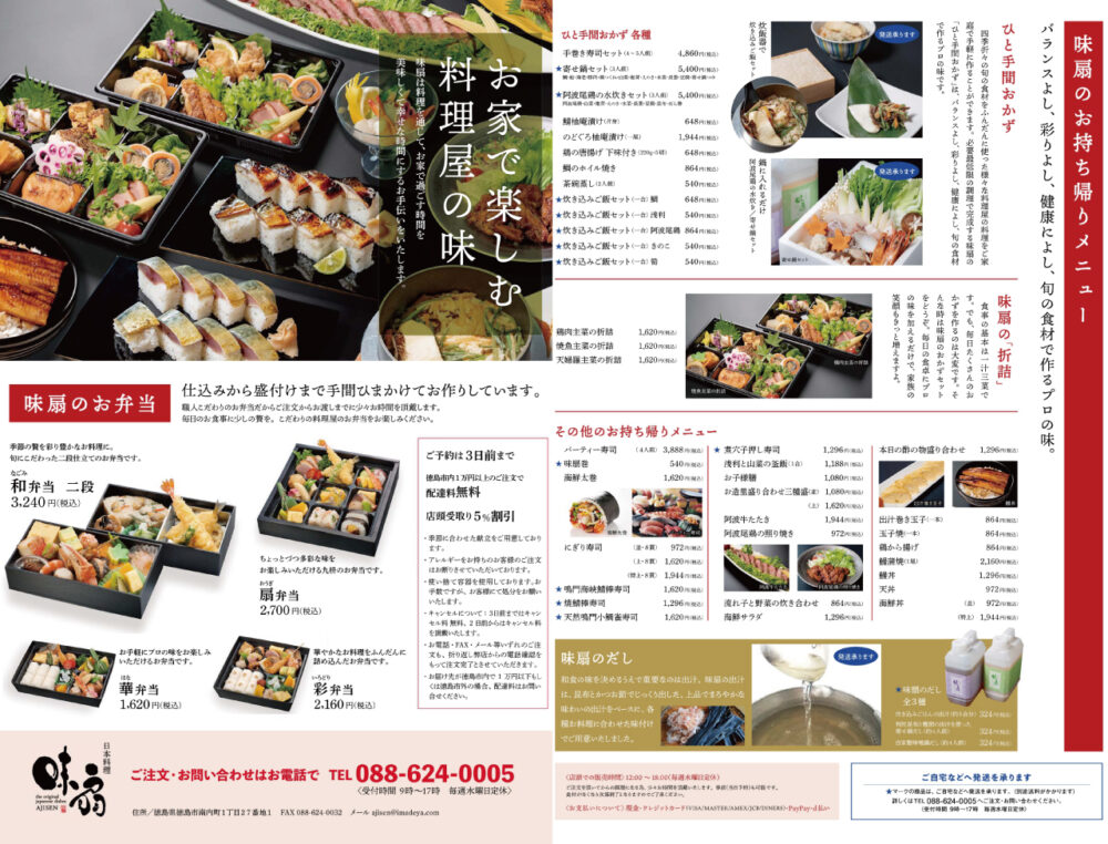 お弁当や折詰(お惣菜)などのテイクアウトメニューはもちろん、
